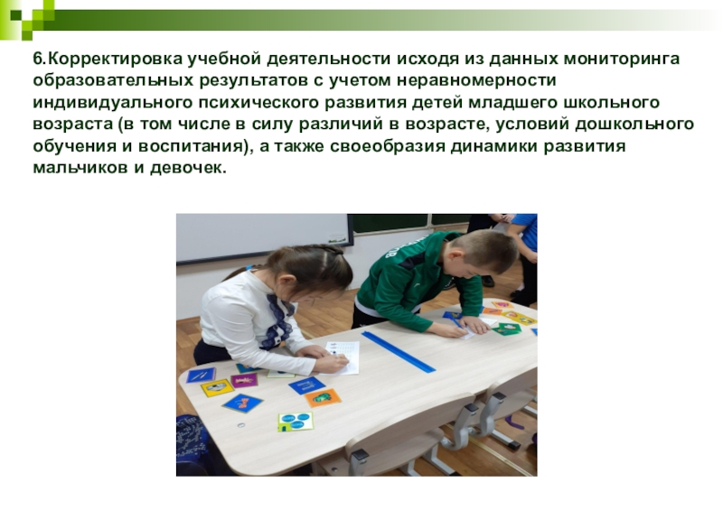 6.Корректировка учебной деятельности исходя из данных мониторинга образовательных результатов с учетом неравномерности индивидуального психического развития детей младшего