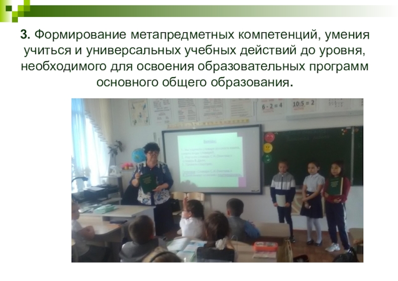 3. Формирование метапредметных компетенций, умения учиться и универсальных учебных действий до уровня, необходимого для освоения образовательных программ
