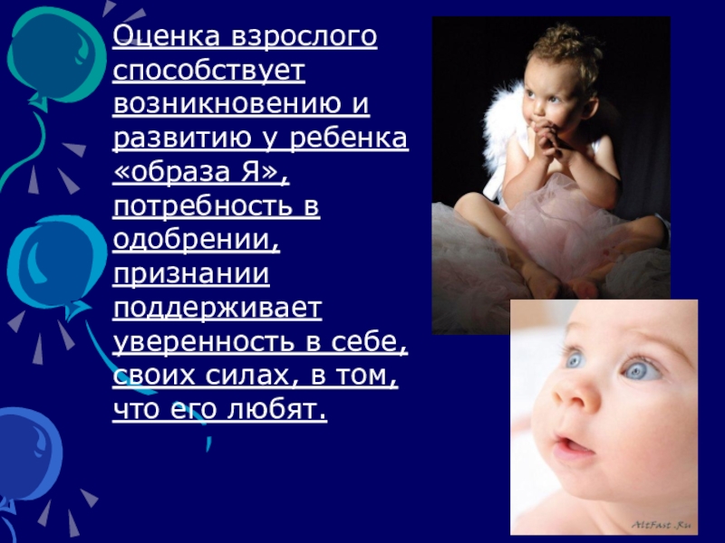 Слайд 22Оценка взрослого способствует возникновению и развитию у ребенка «образа Я», потребность