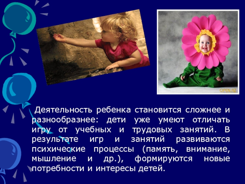 Деятельность ребенка становится сложнее и разнообразнее: дети уже умеют отличать игру
