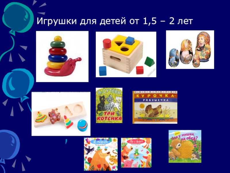 Слайд 20Игрушки для детей от 1,5 – 2 лет