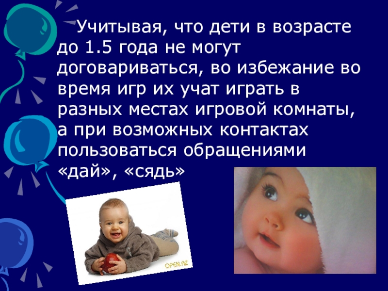Слайд 11 Учитывая, что дети в возрасте до 1.5 года не могут договариваться,