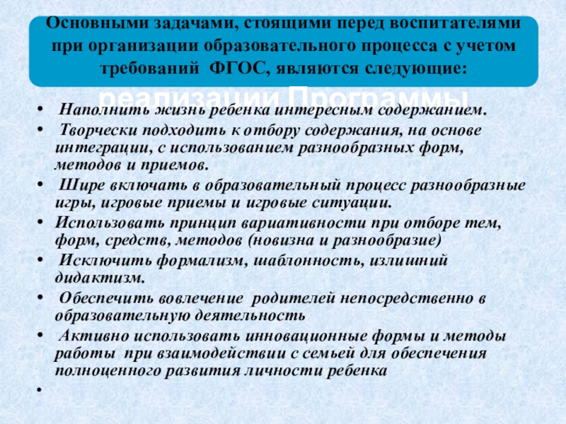 Активно использовать инновационные формы и методы работы при взаимодействии с семьей для обеспечения полноценного развития личности ребенка