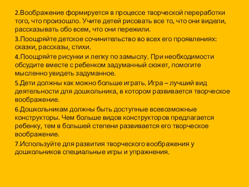 Слайд 52.Воображение формируется в процессе творческой переработки того, что произошло. Учите детей