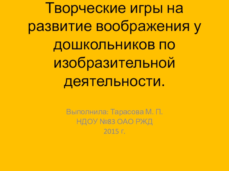 Слайд 1Творческие игры на развитие воображения у дошкольников по изобразительной деятельности.