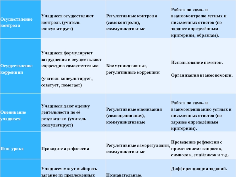 Регулятивные УУД обеспечивают возможность управления познавательной и учебной деятельности, посредством постановки целей, контроля в форме сличения способа действия и его результата с заданным эталоном.