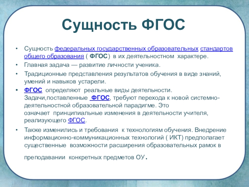 Реализация ФГОС рассматривается в качестве предмета солидарной ответственности главных действующих сил образования.