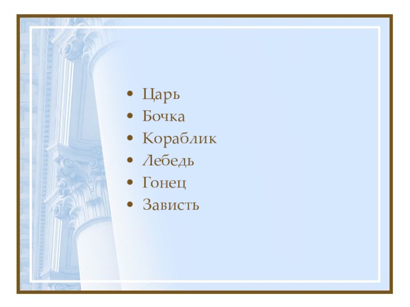 ЦарьБочкаКорабликЛебедьГонецЗависть