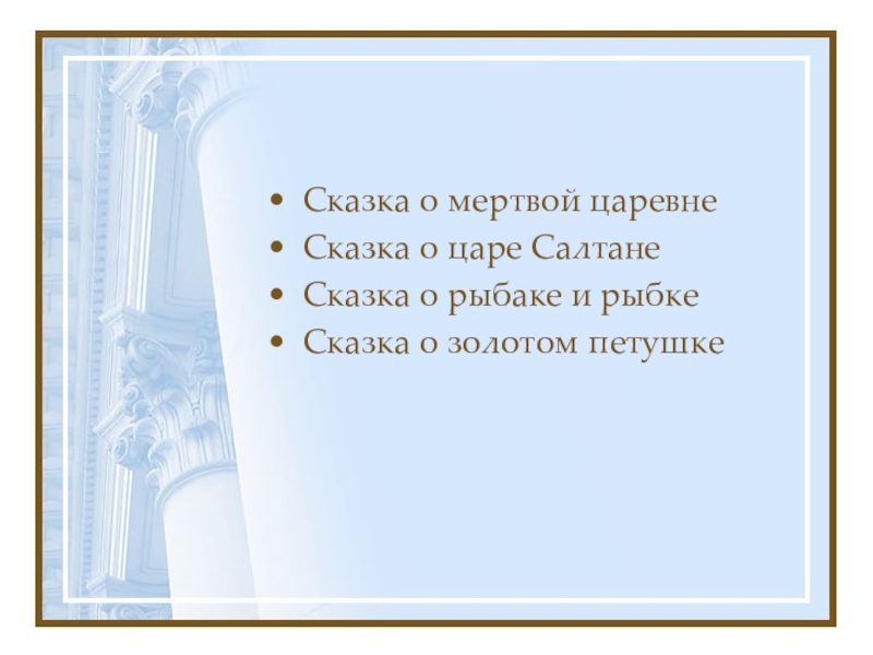 Слайд 3Сказки Пушкина