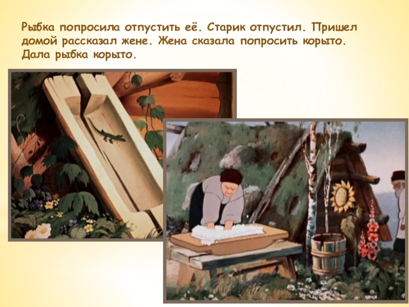 Старик два раза закидывал невод — ничего не было, в третий раз вытянул золотую рыбку.