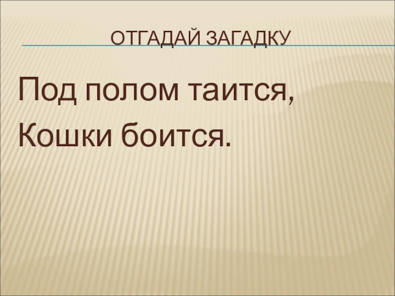 ОТГАДАЙ ЗАГАДКУ Под полом таится,Кошки боится.