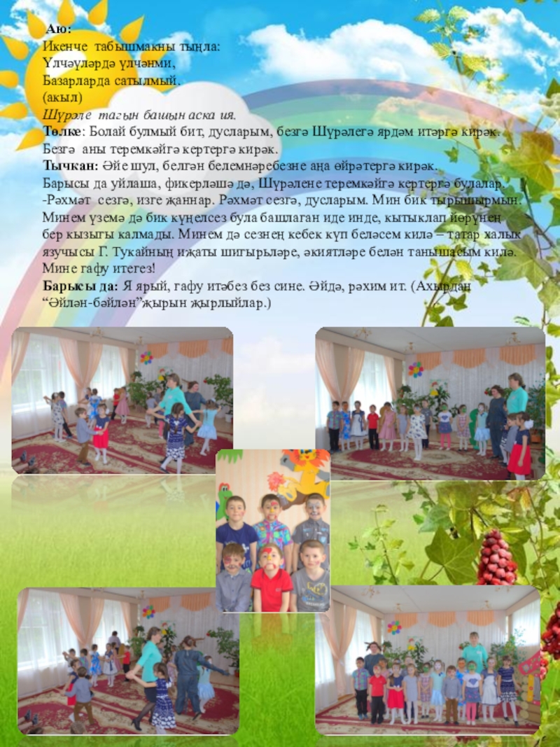 Беренче толке. Без сезгә “Бала белән күбәләк” шигырен сөйлисебез килә.