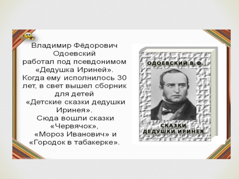 ПРЕЗЕНТАЦИЯ К СКАЗКЕ В. Ф .ОДОЕВСКОГО ГОРОДОК В ТАБАКЕРКЕ Детские презентации