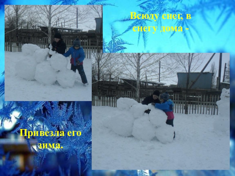 Всюду снег, в снегу дома -Привезла его зима.