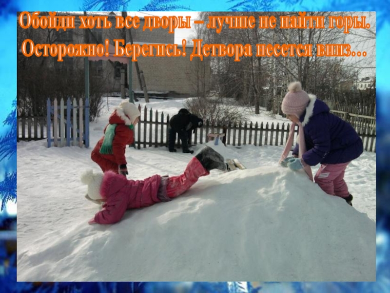 Обойди хоть все дворы – лучше не найти горы. Осторожно! Берегись! Детвора несется вниз…