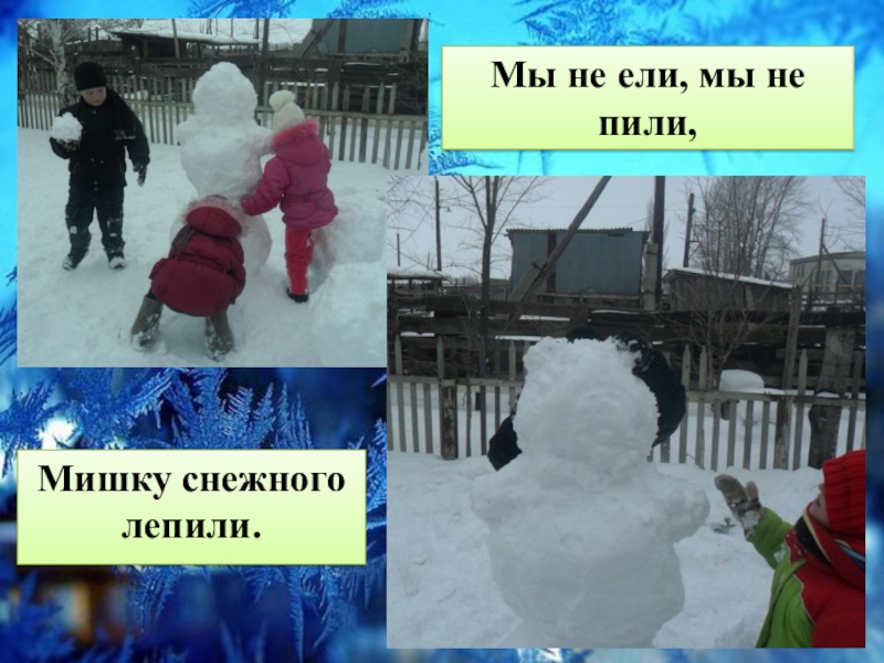 Мы не ели, мы не пили,Мишку снежного лепили.