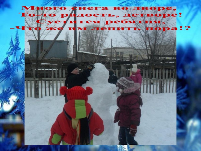 Слайд 11Много снега во дворе, То-то радость, детворе! Суетится ребятня, -Что же