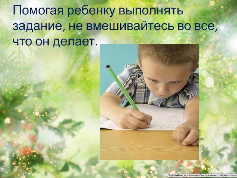Слайд 5Помогая ребенку выполнять задание, не вмешивайтесь во все, что он делает.
