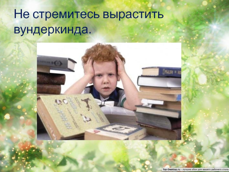 Слайд 10Не стремитесь вырастить вундеркинда.