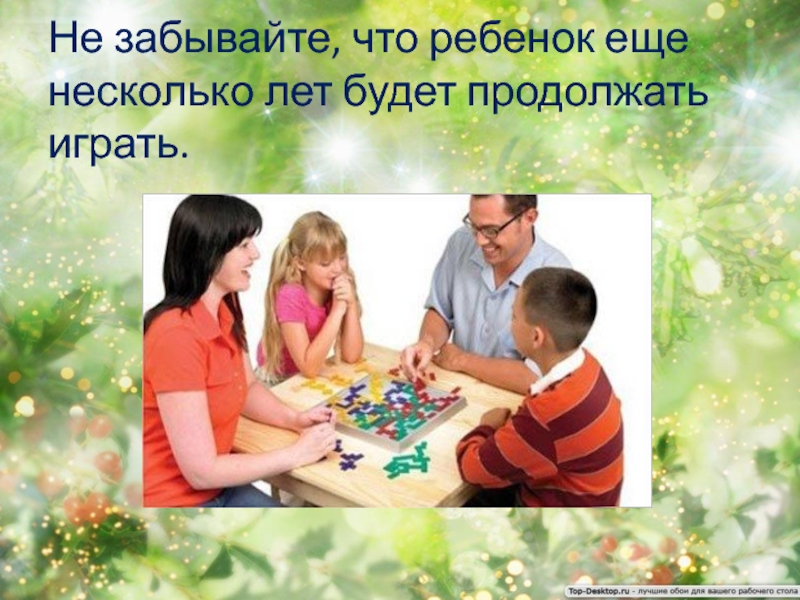Слайд 13Не забывайте, что ребенок еще несколько лет будет продолжать играть.