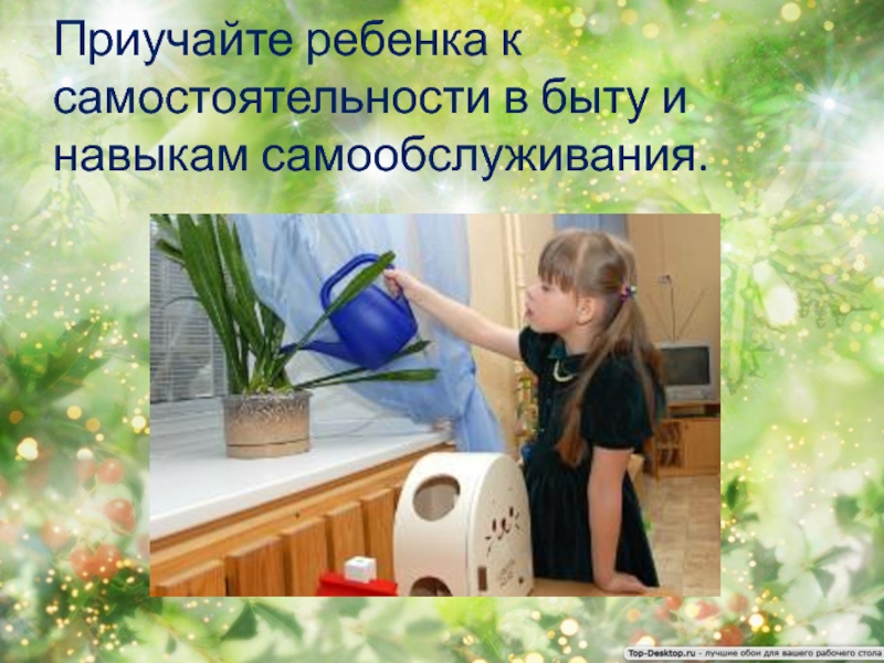 Слайд 8Приучайте ребенка к самостоятельности в быту и навыкам самообслуживания.