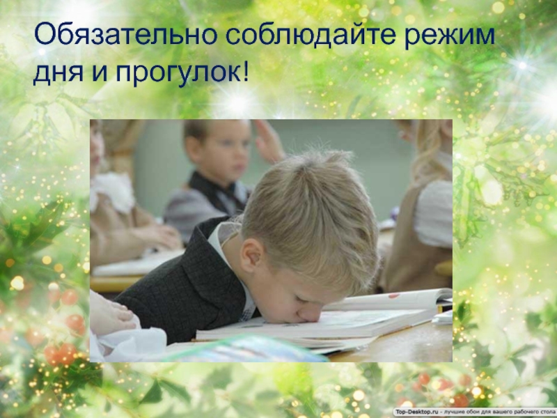 Слайд 12Обязательно соблюдайте режим дня и прогулок!