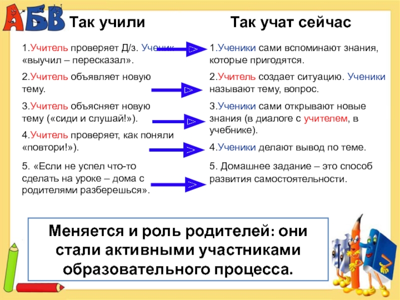 Меняется и роль родителей: они стали активными участниками образовательного процесса.