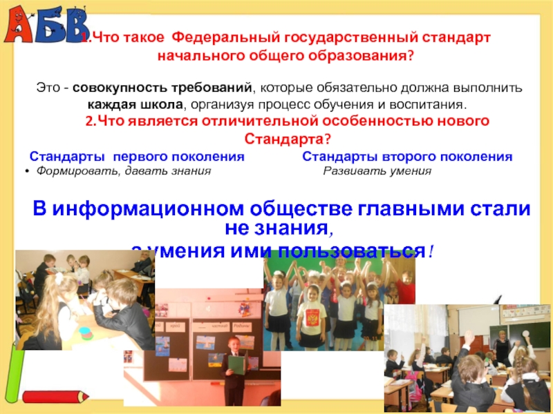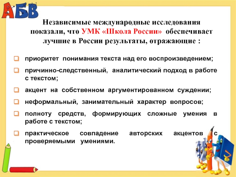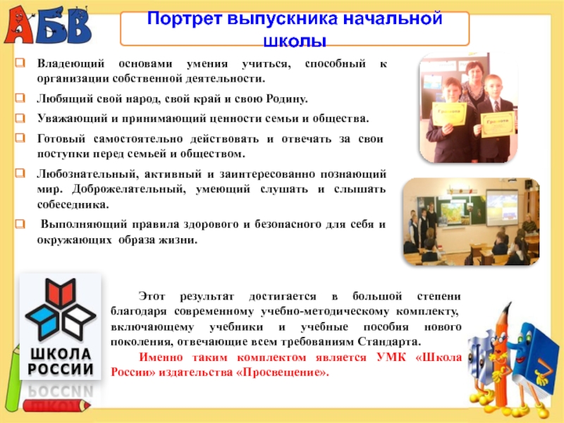 Этот результат достигается в большой степени благодаря современному учебно-методическому комплекту, включающему учебники и учебные пособия нового поколения, отвечающие всем требованиям Стандарта.