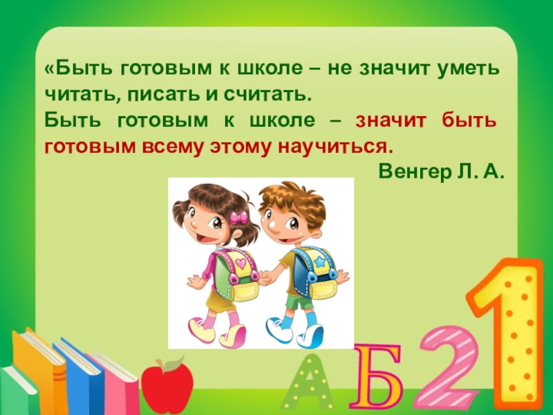Слайд 2«Быть готовым к школе – не значит уметь читать, писать и