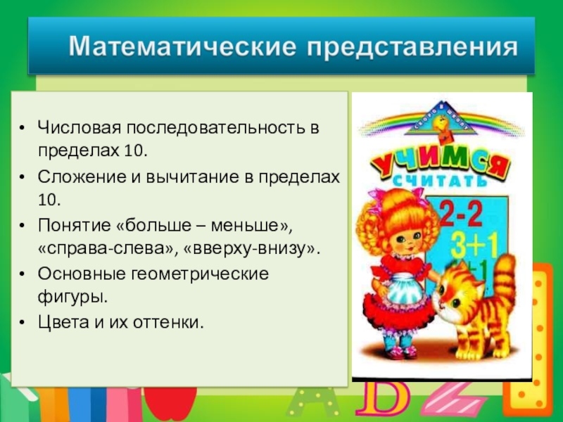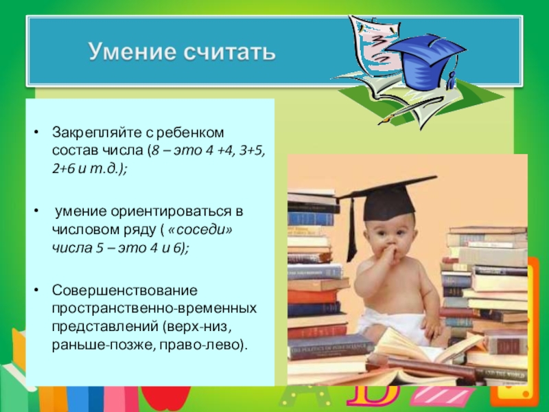 умение ориентироваться в числовом ряду ( «соседи» числа 5 – это 4 и 6);