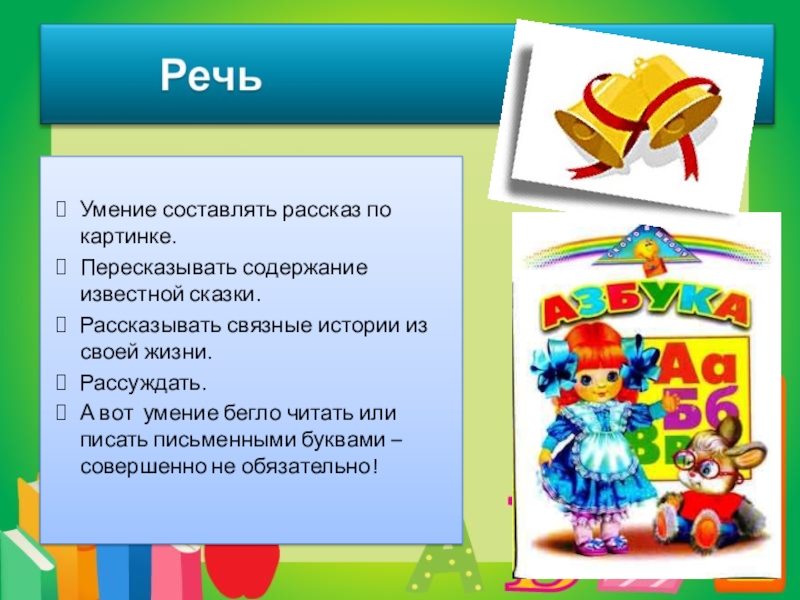 А вот умение бегло читать или писать письменными буквами – совершенно не обязательно!