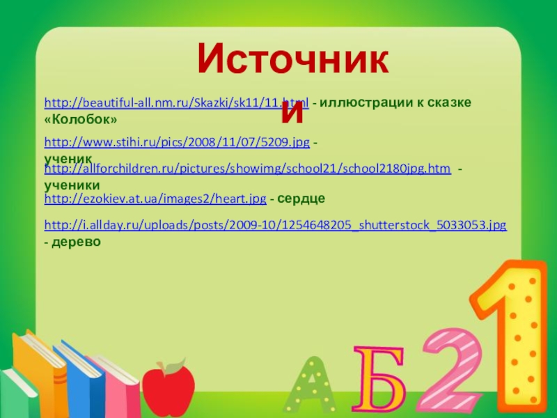Слайд 16http://beautiful-all.nm.ru/Skazki/sk11/11.html - иллюстрации к сказке «Колобок»