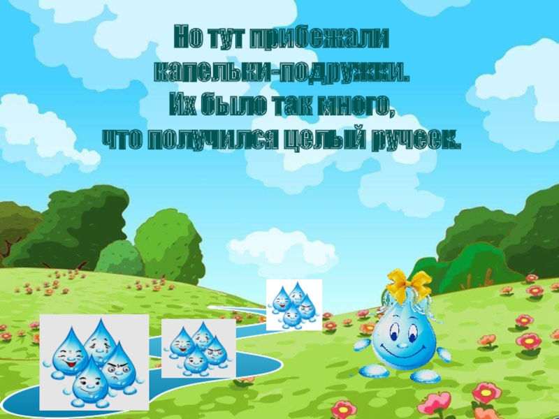 Но тут прибежали капельки-подружки. Их было так много, что получился целый ручеек.