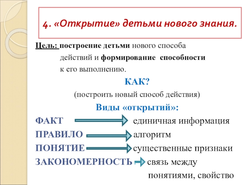 способов действий, достаточных для построения нового знания, и их обобщение;