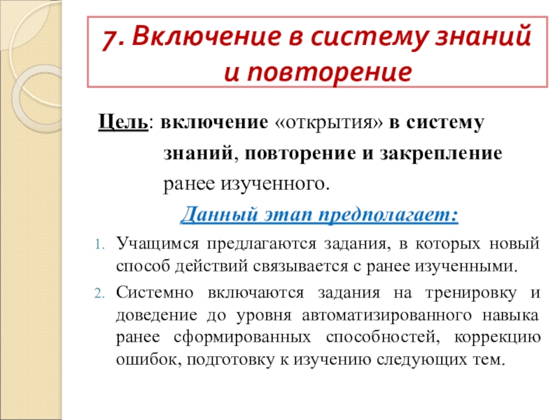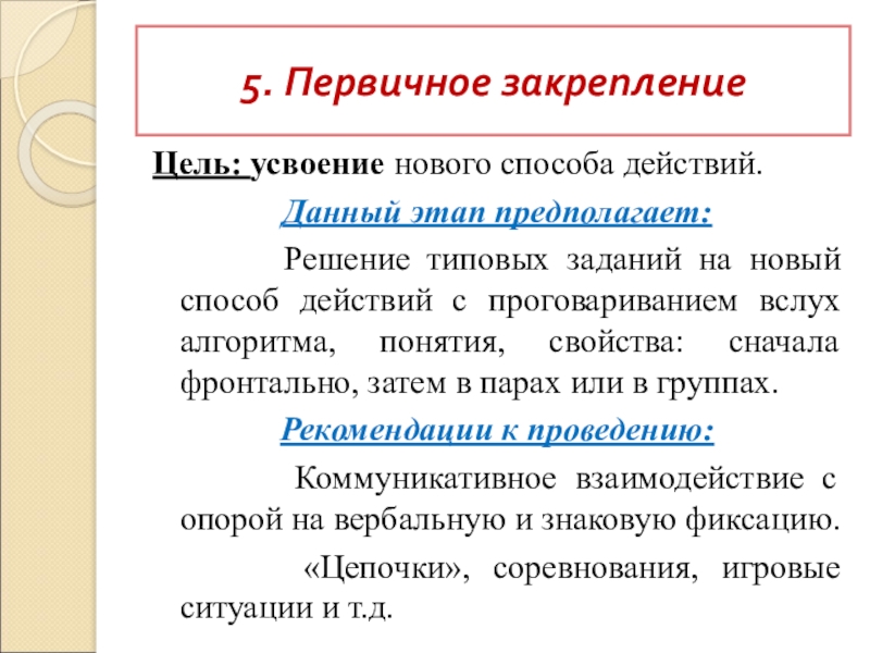 Учащимся предлагаются задания, в которых новый способ действий связывается с ранее изученными.