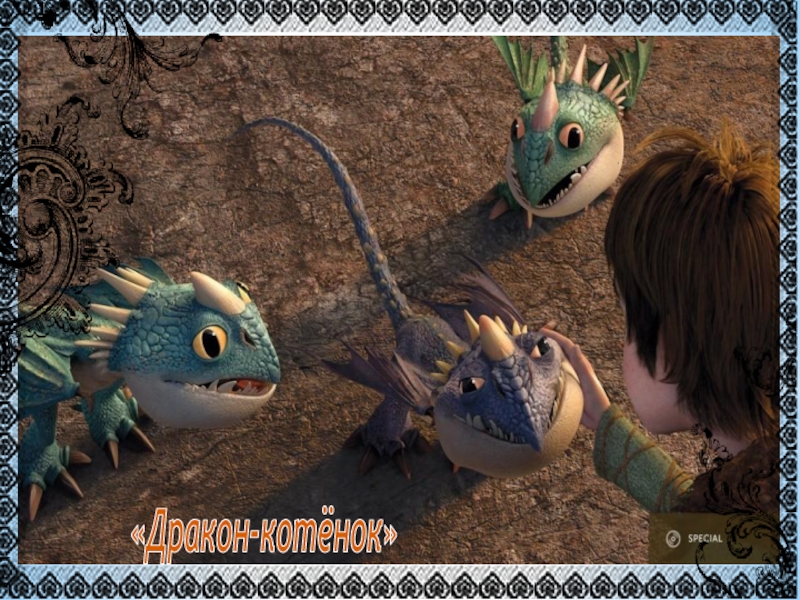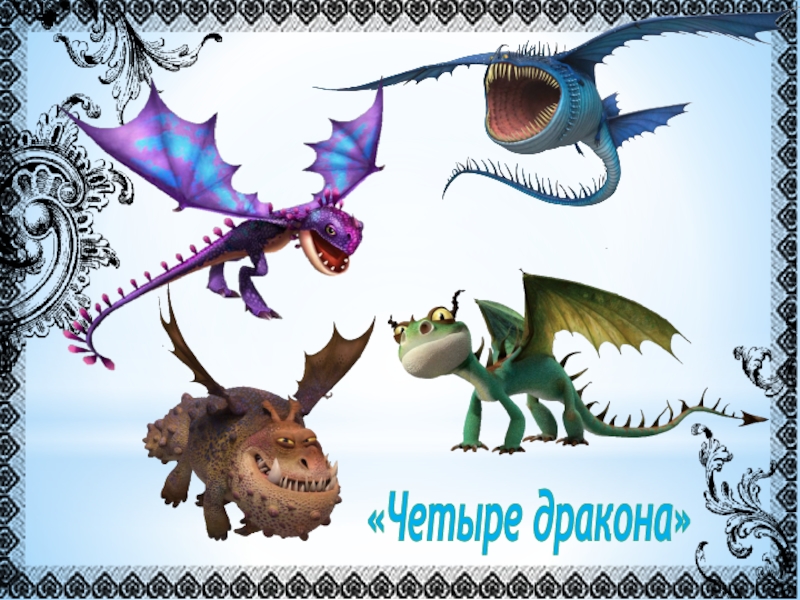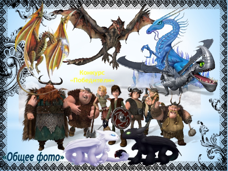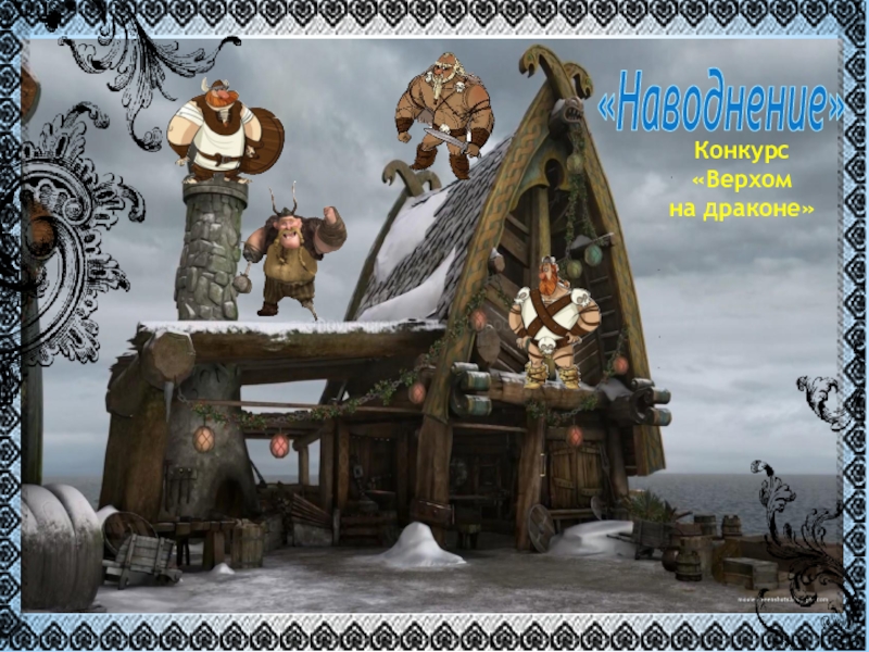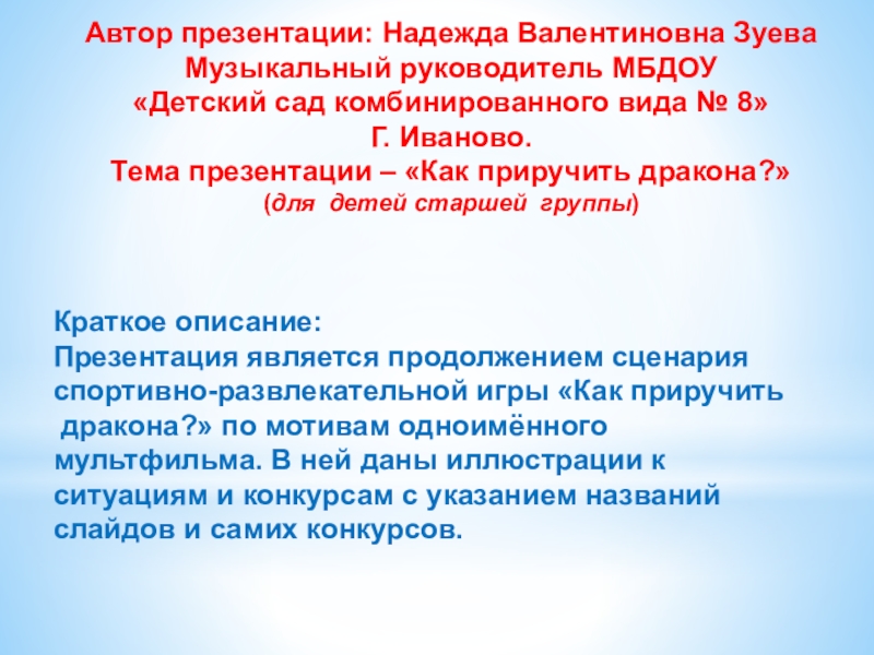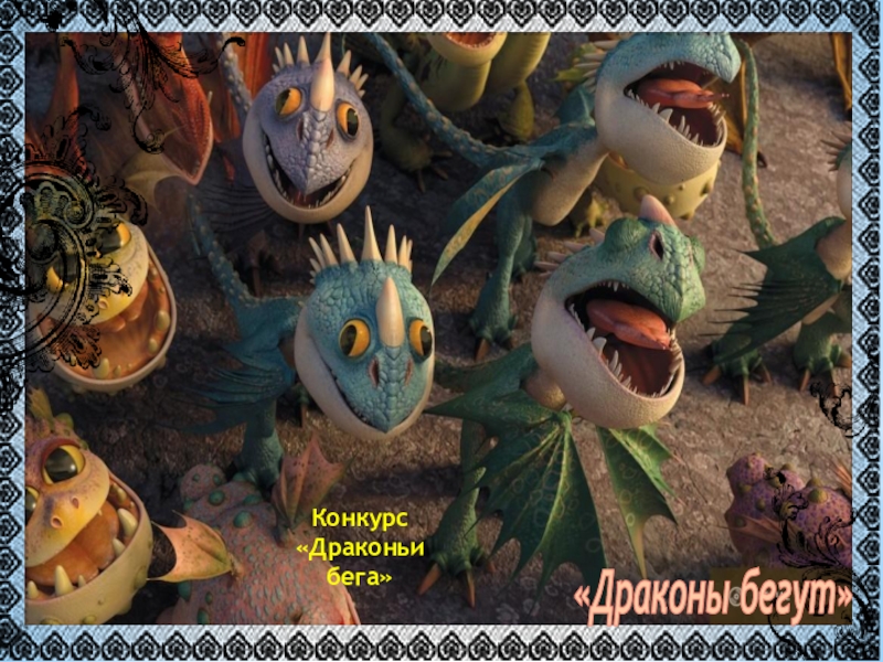 дракона?» по мотивам одноимённого мультфильма. В ней даны иллюстрации к ситуациям и конкурсам с указанием названий слайдов и самих конкурсов.