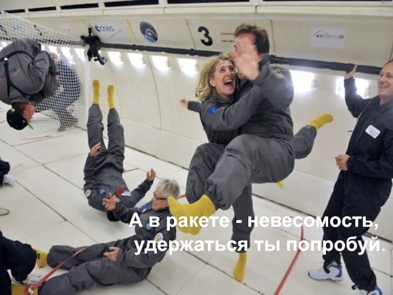 Слайд 8А в ракете - невесомость,