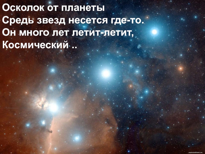 Осколок от планетыСредь звезд несется где-то.Он много лет летит-летит,Космический ..