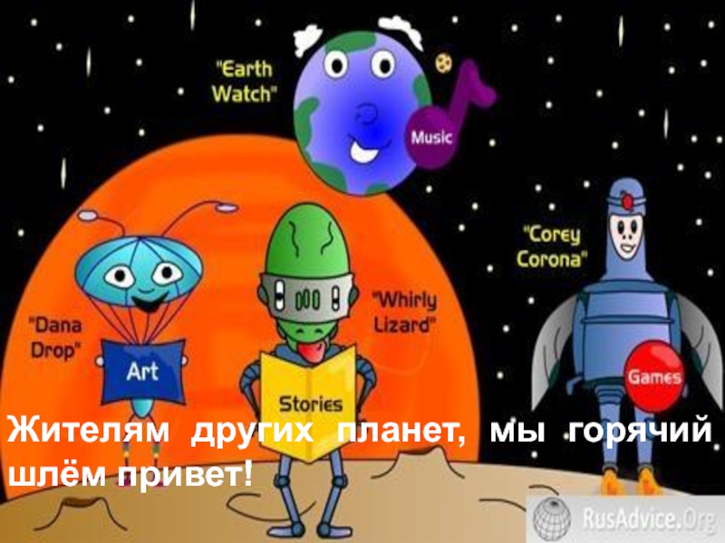 Слайд 9Жителям других планет, мы горячий шлём привет!
