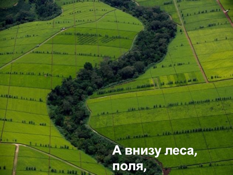Слайд 7А внизу леса, поля,