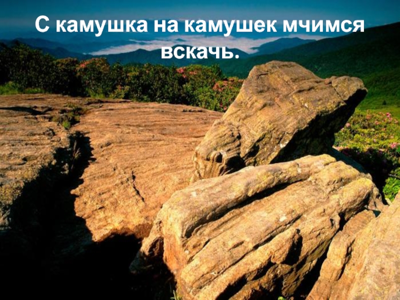 Слайд 11 С камушка на камушек мчимся вскачь.