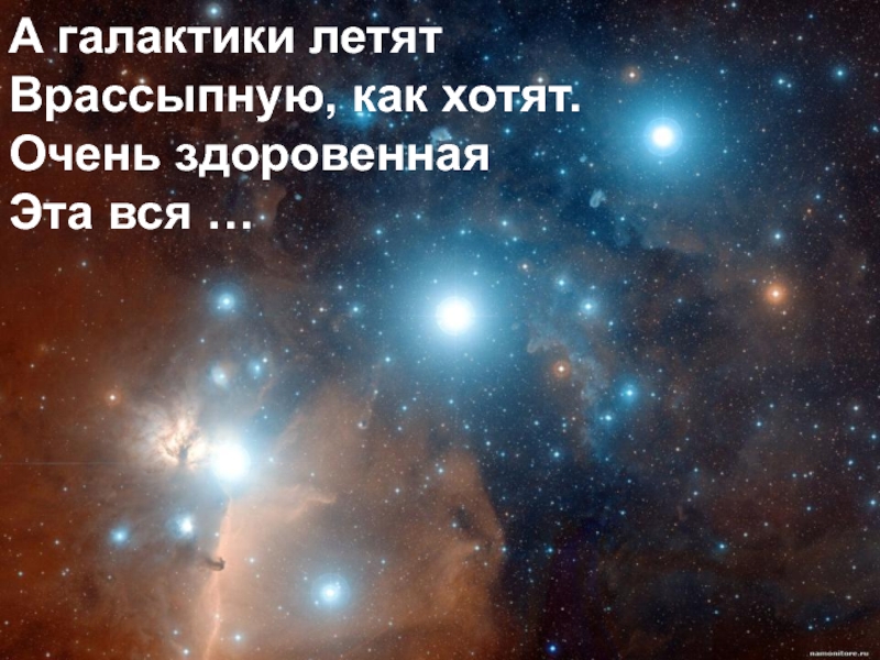 А галактики летятВрассыпную, как хотят.Очень здоровеннаяЭта вся …