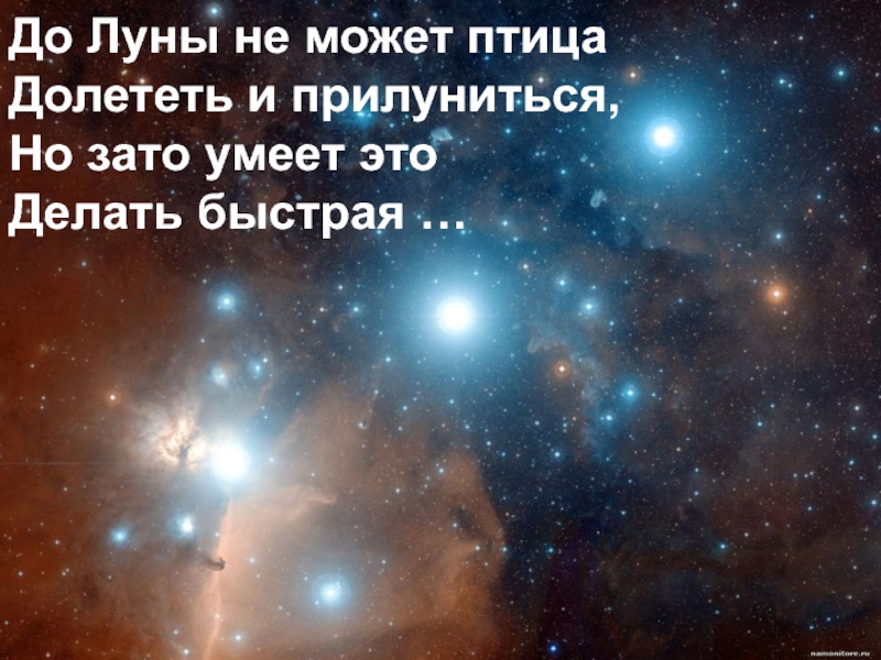 Слайд 31До Луны не может птица