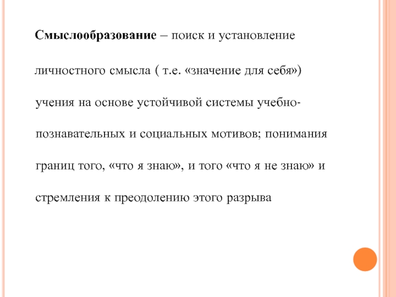 Смыслообразование – поиск и установление  личностного смысла ( т.е. «значение для себя») учения на