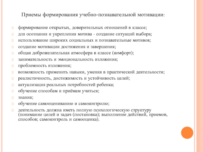 Слайд 4Приемы формирования учебно-познавательной мотивации:
