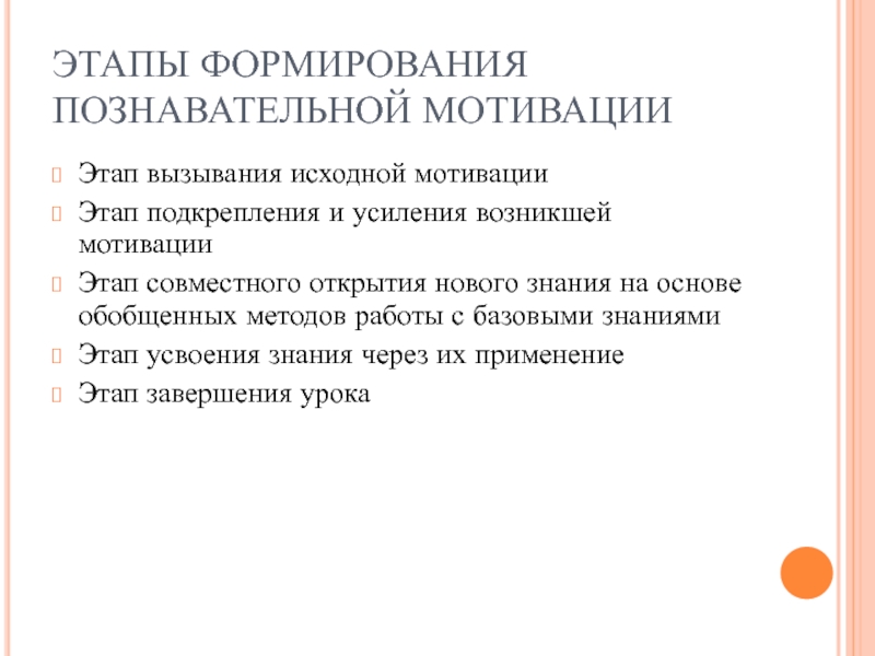 Слайд 9ЭТАПЫ ФОРМИРОВАНИЯ ПОЗНАВАТЕЛЬНОЙ МОТИВАЦИИ