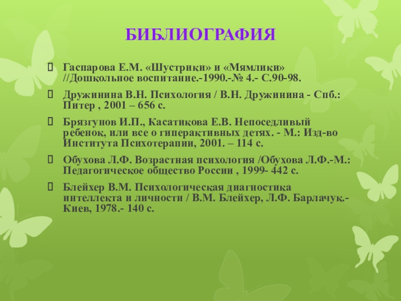 Гаспарова Е.М. «Шустрики» и «Мямлики» //Дошкольное воспитание.-1990.-№ 4.- С.90-98.
