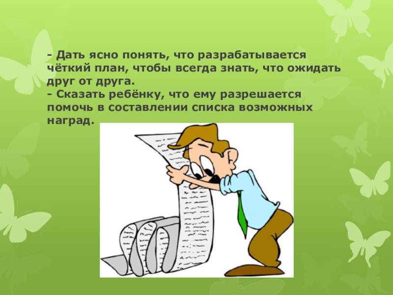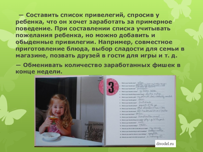 Слайд 14 ― Составить список привелегий, спросив у ребенка, что он хочет