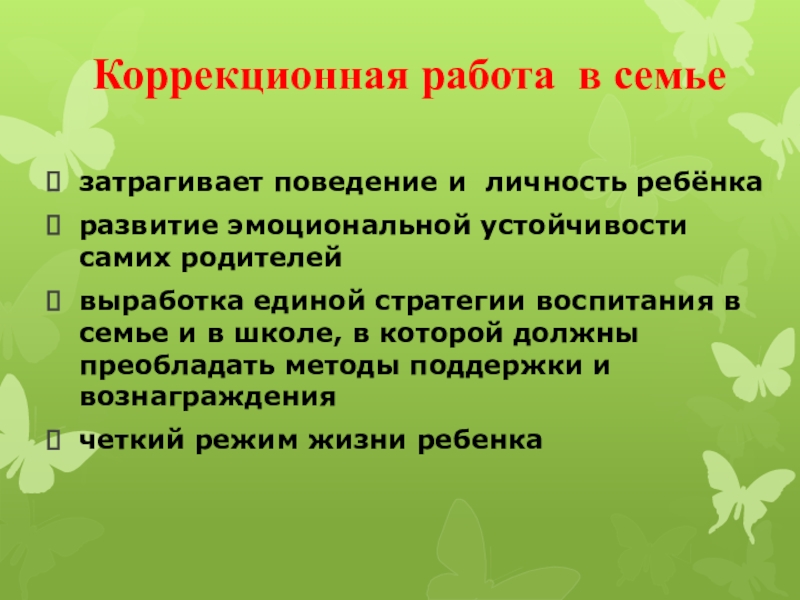 выработка единой стратегии воспитания в семье и в школе, в которой должны преобладать методы поддержки и вознаграждения