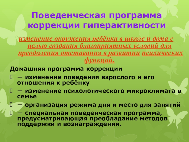 Слайд 6Поведенческая программа коррекции гиперактивности